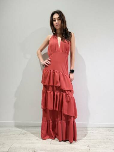 Abito lungo con balze Camille