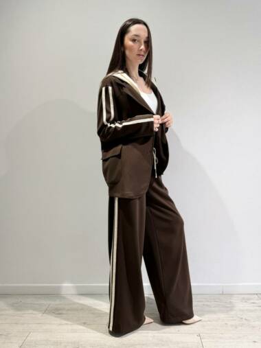 Completo con blazer over e bande laterali