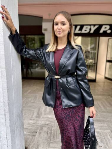 Blazer in ecopelle con cintura