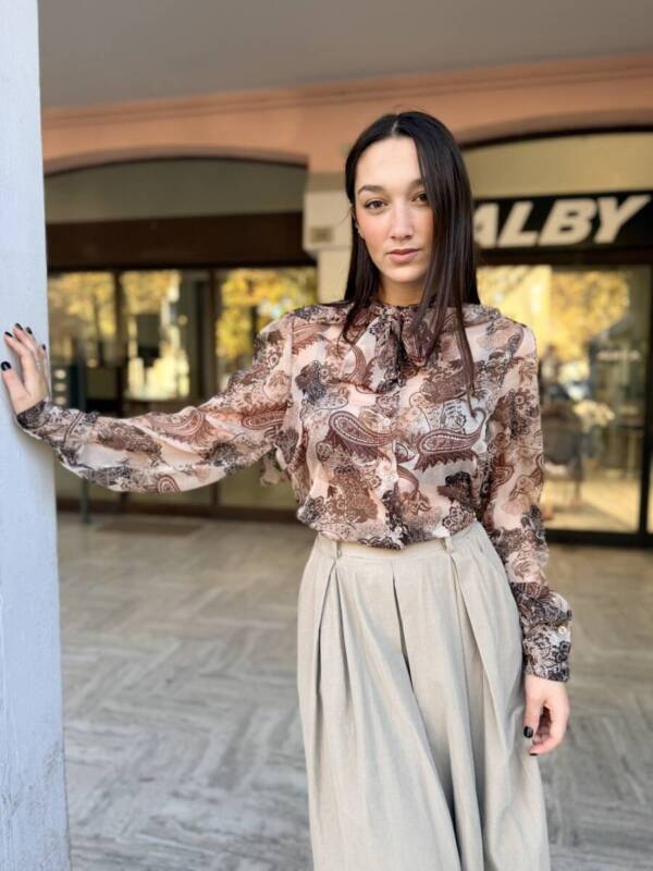 Camicia velata con fiocco
