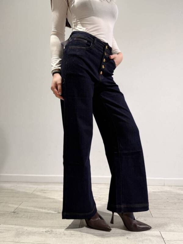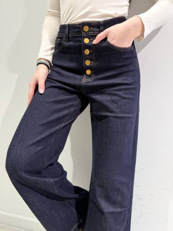 Jeans col blu scuro con cucitura in contrasto