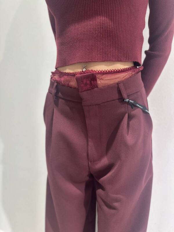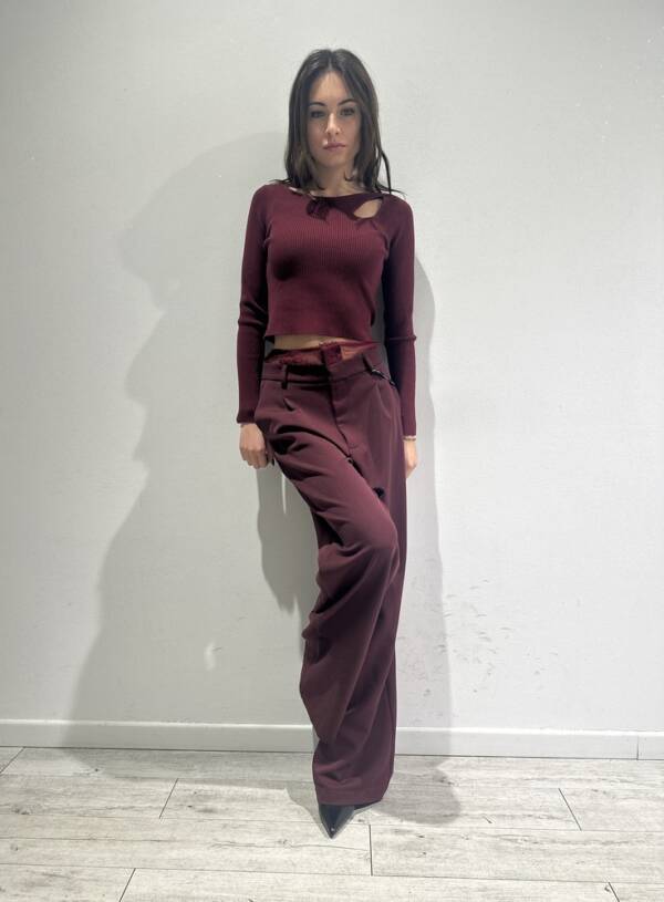 Pantalone a palazzo con fascione in pizzo bordeaux -Lumina